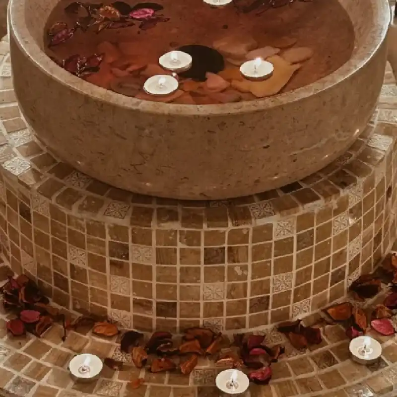 The luxury of a traditional Moroccan bath at home. Our professionals will create a relaxing spa-like experience in your own bathroom, helping you refresh your skin.